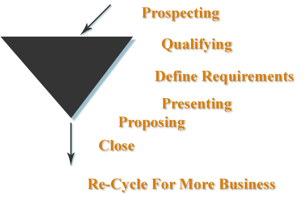 Every company has a different typical process which the prospect goes through during the sale. This is an example sales funnel to help you build your own;